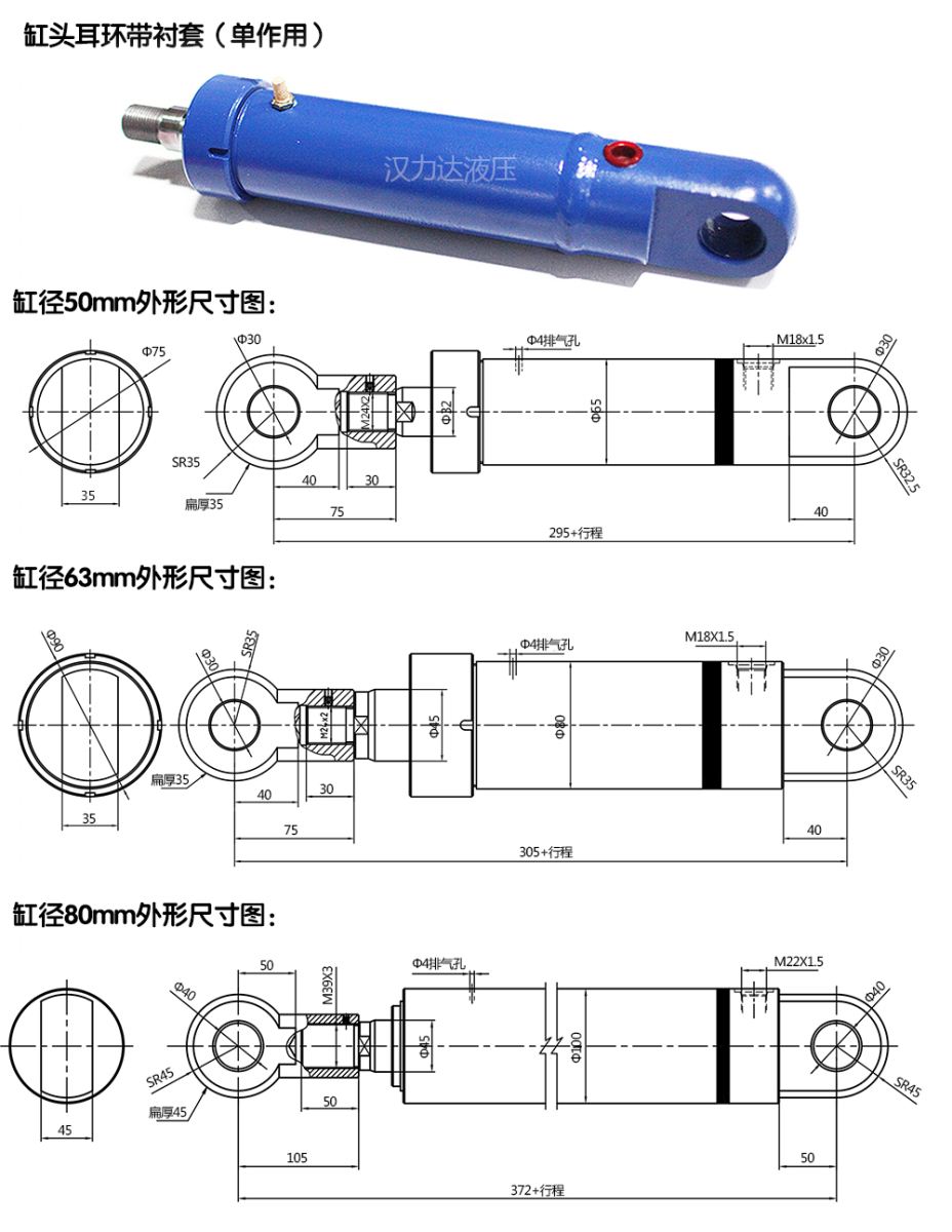 單作用油缸(缸頭耳環(huán)帶襯套)