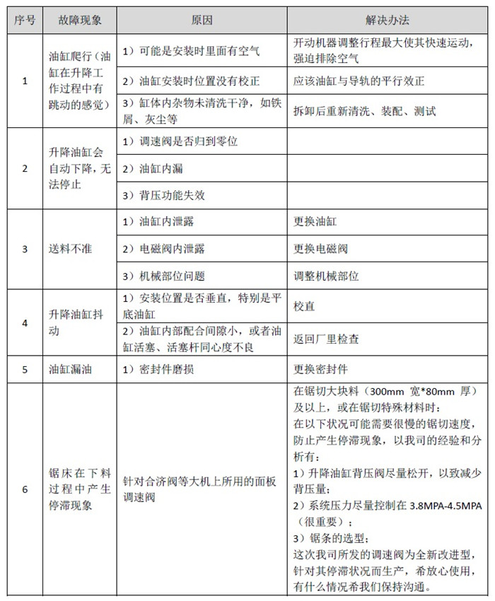 帶鋸床油缸故障及解決辦法