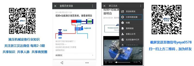 關(guān)注浙江漢達(dá)公眾號(hào)(微信號(hào):zjhanda,下圖左邊二維碼)分享此文章微信版到您的朋友圈,并截屏發(fā)給微信號(hào)yeya0578(下圖右邊二維碼),即可入微信群《漢達(dá)班液壓系統(tǒng)學(xué)習(xí)分享群二》(《漢達(dá)班液壓系統(tǒng)學(xué)習(xí)分享群一》已滿員)